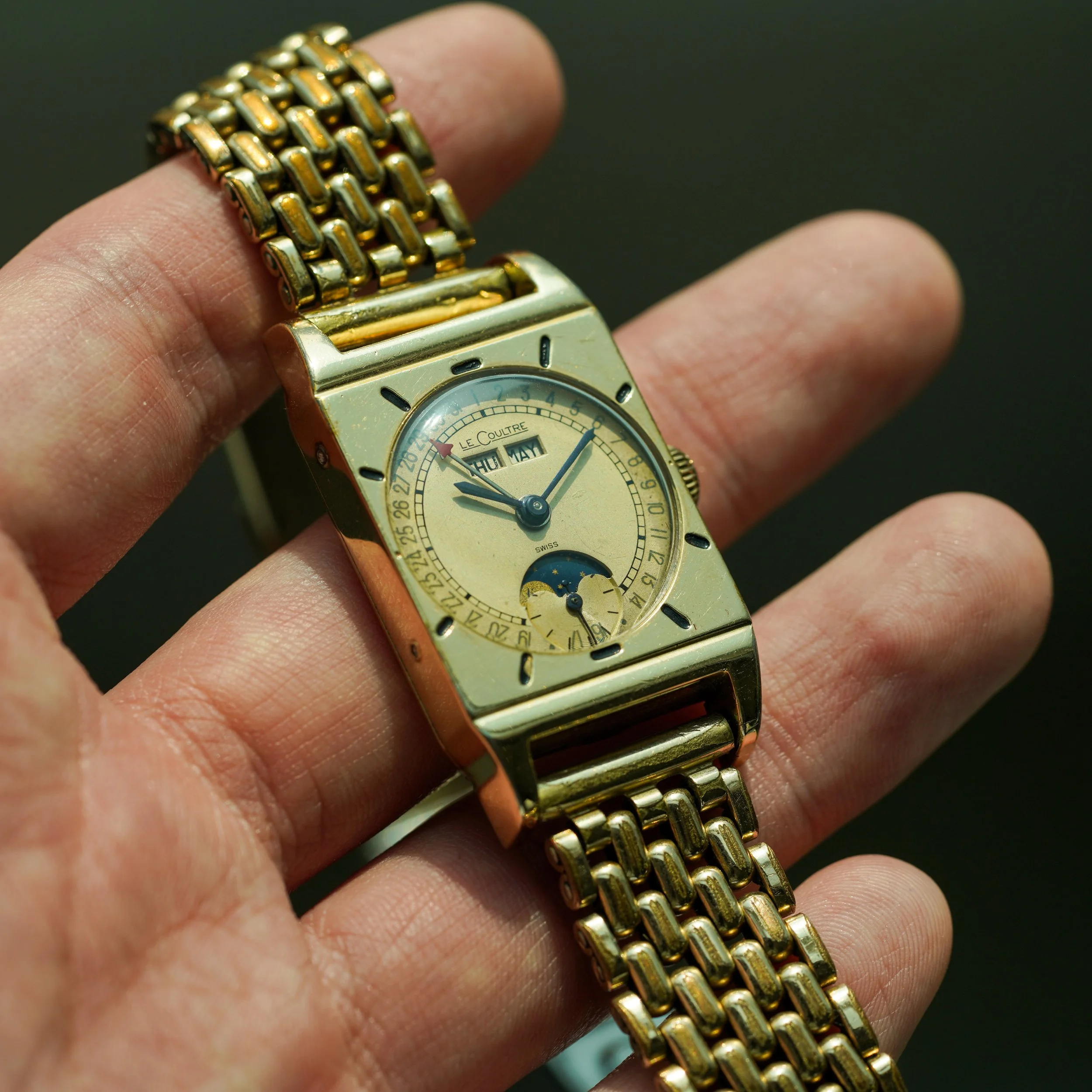 A rare Le Coultre triple calendar with moonphase (ref. 2726) with a “Dore” patinated dial.