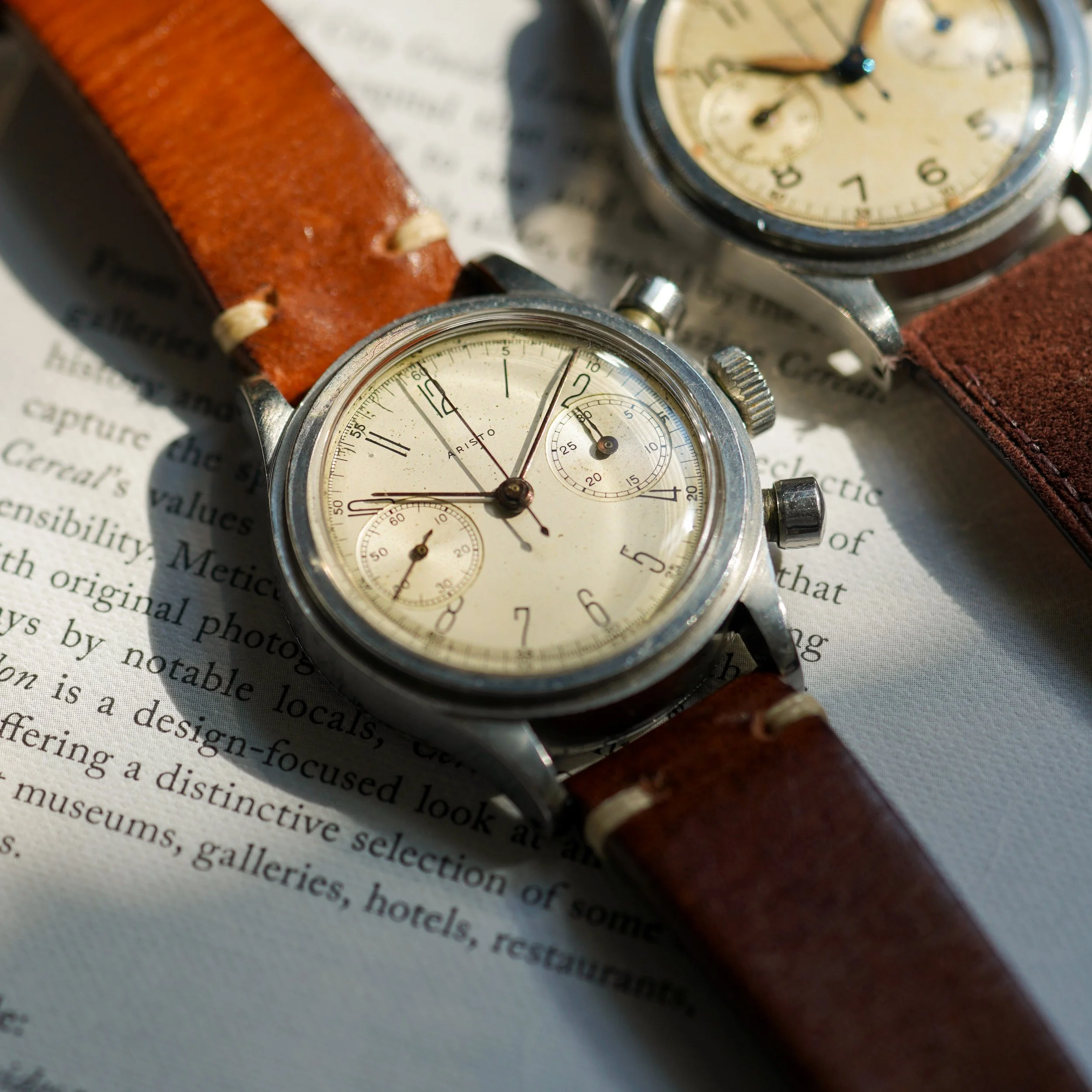 An extremely fine waterproof chronograph by Aristo, with a superb stepped case and oversized pump pushers.