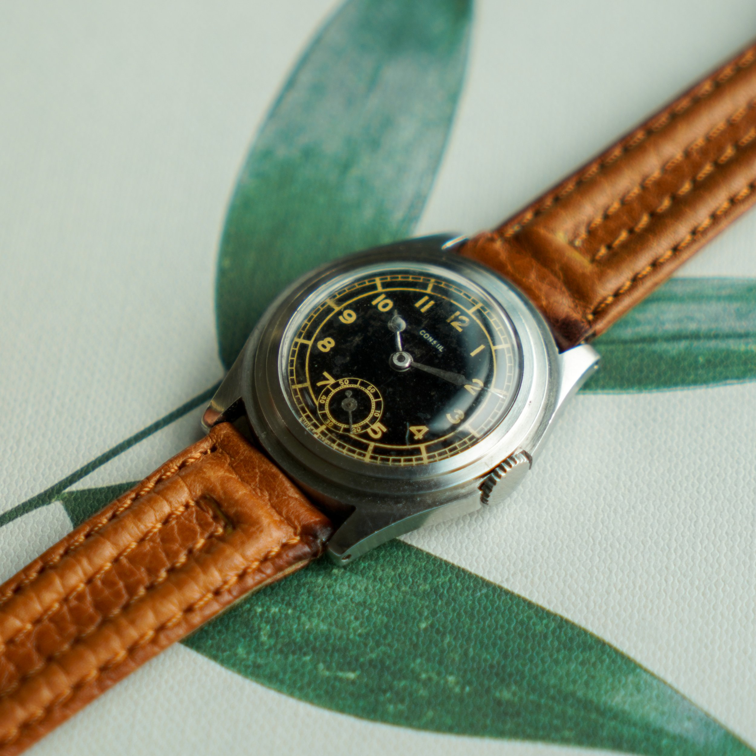 A rare tripled stepped calatrava from Consul, featuring a black sector dial.