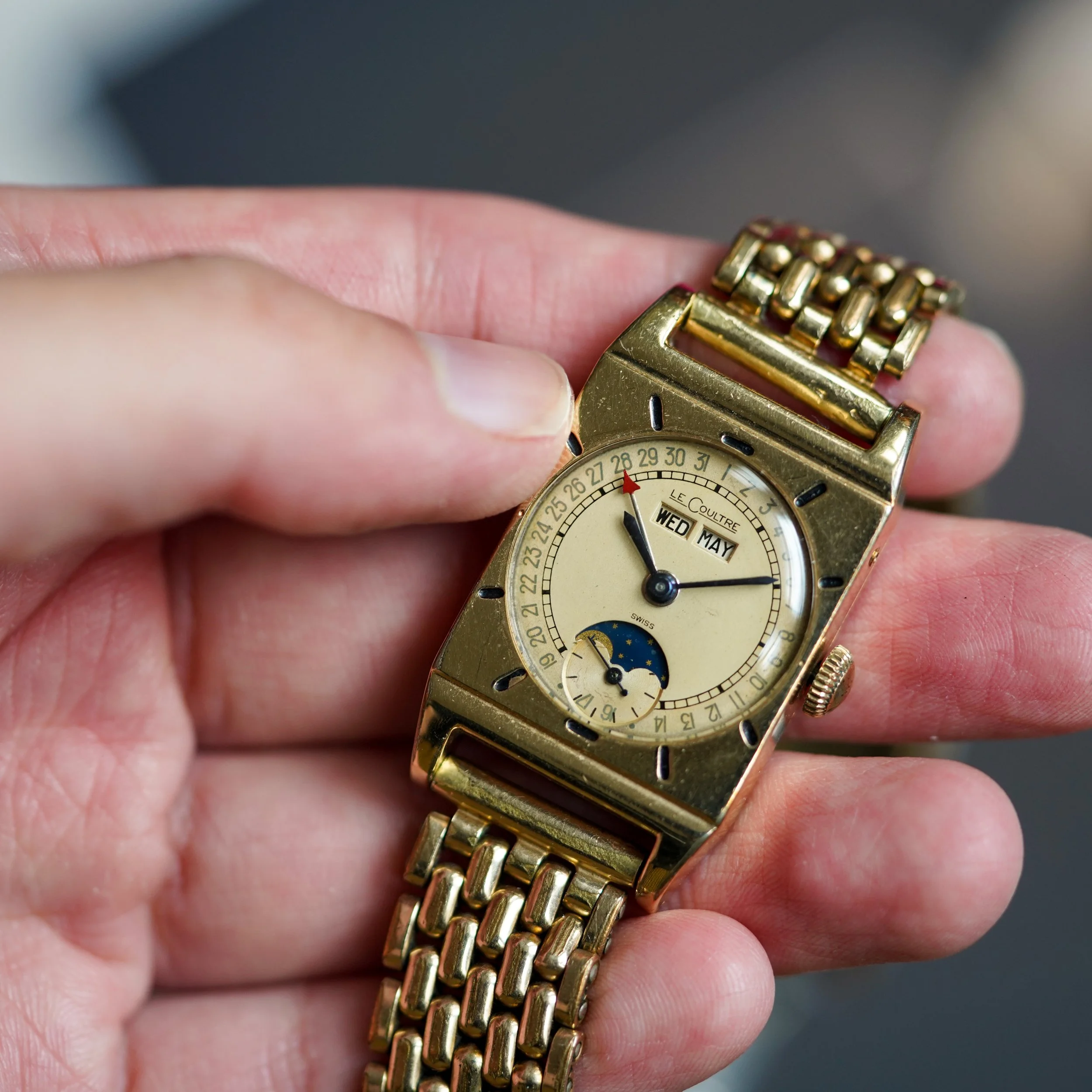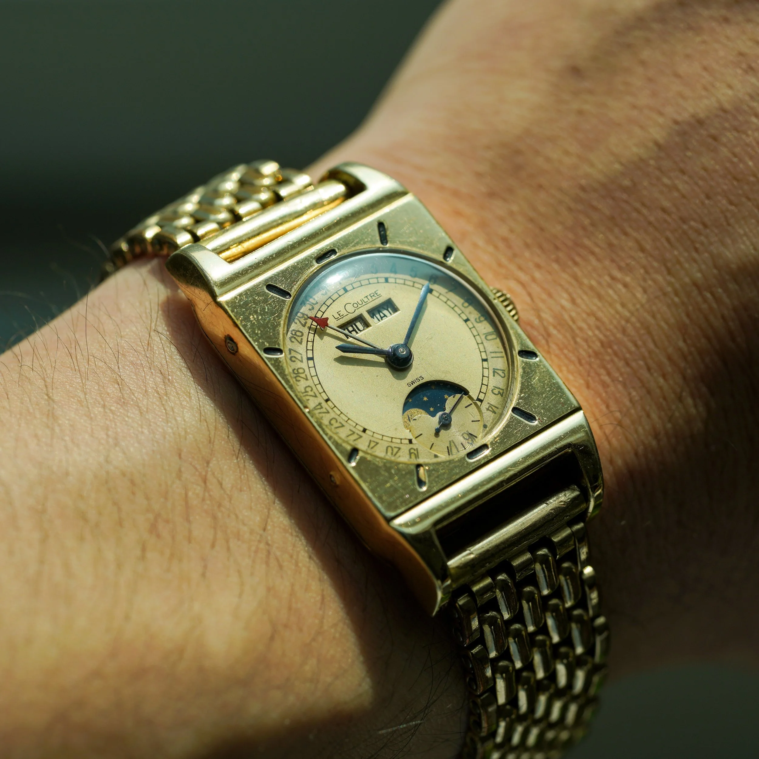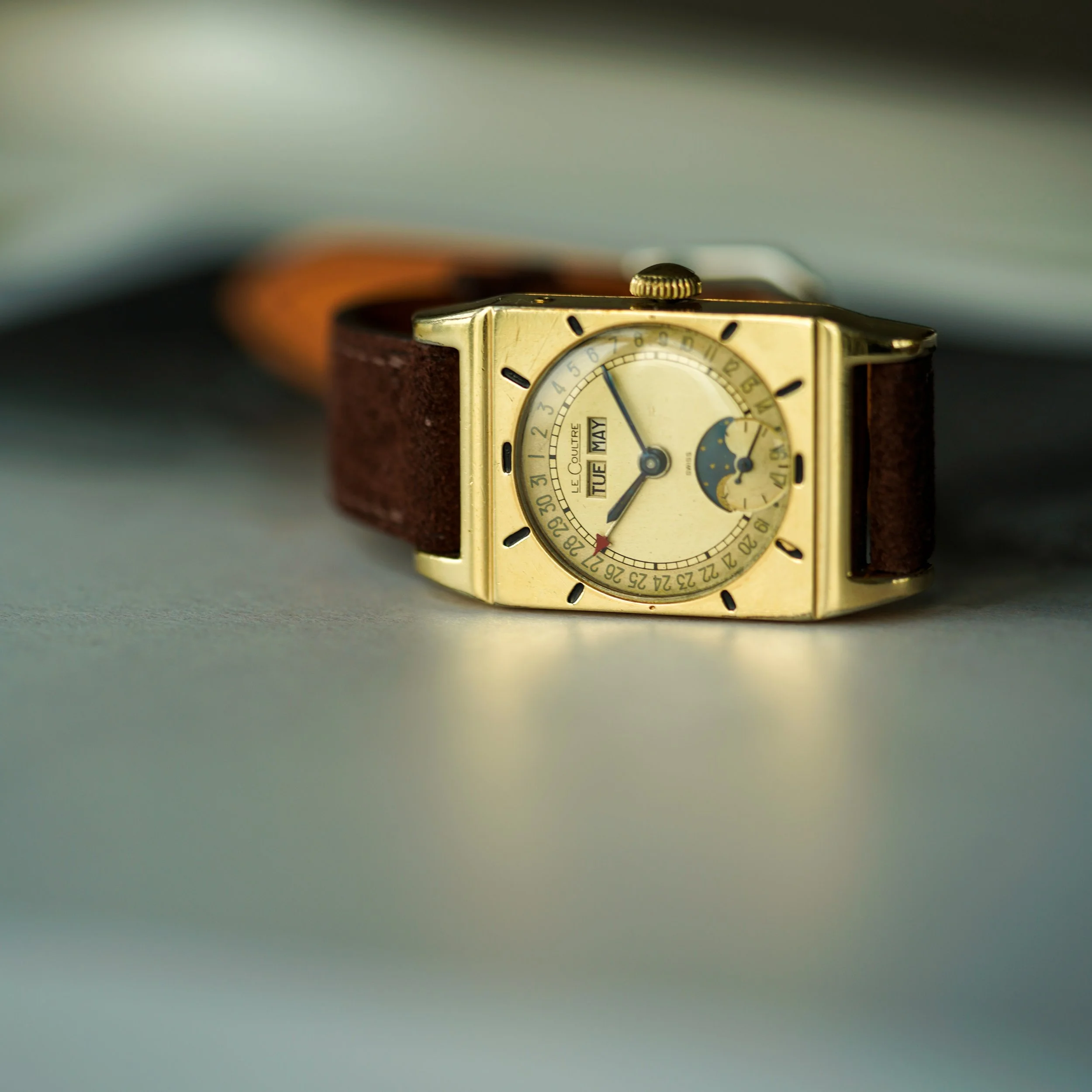 An incredibly nice example of the famous Le Coultre 2726, with a “Dore” patinated dial.