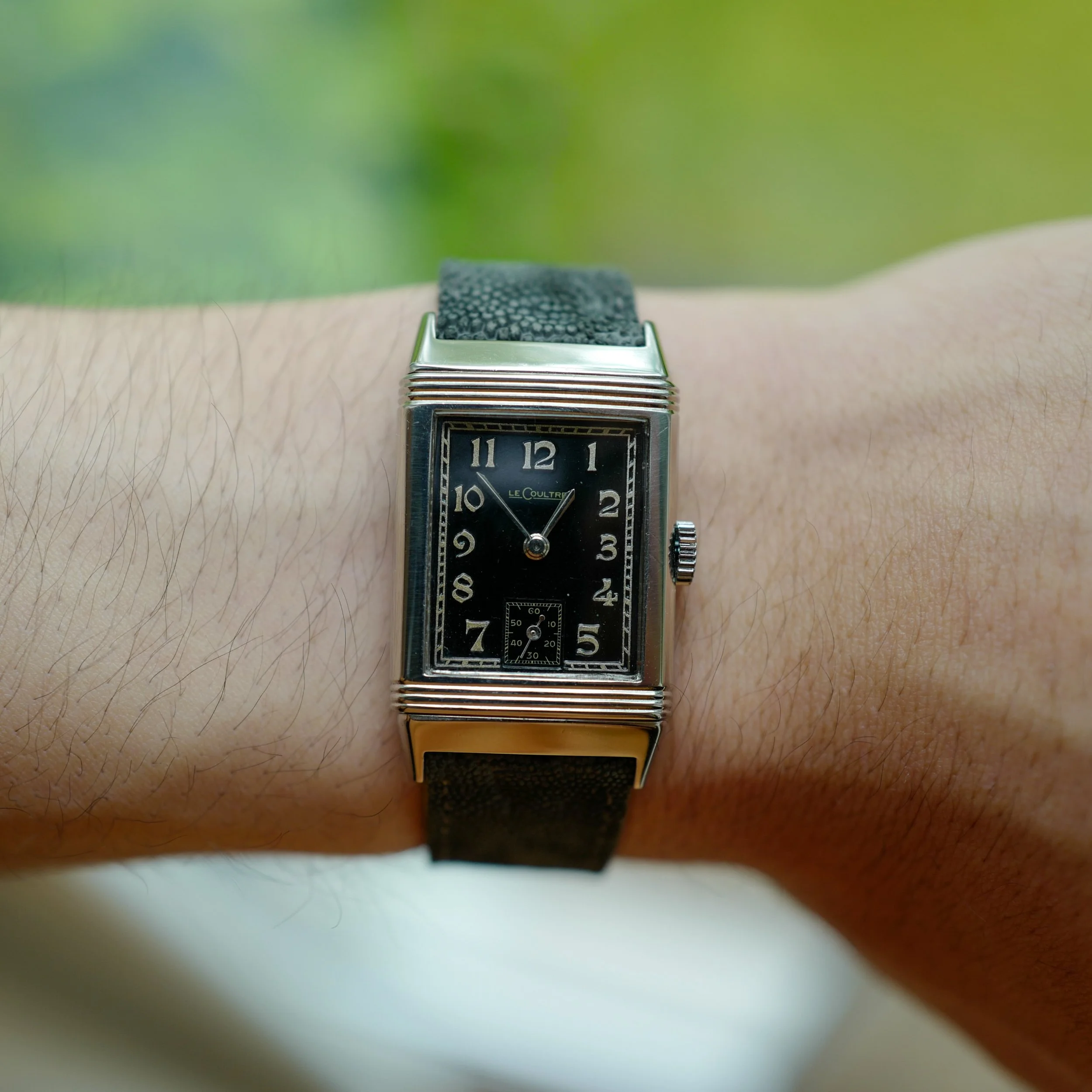 The undoubtedly iconic Reverso. Third series with the very rare embossed art-deco numerals, in pristine condition.