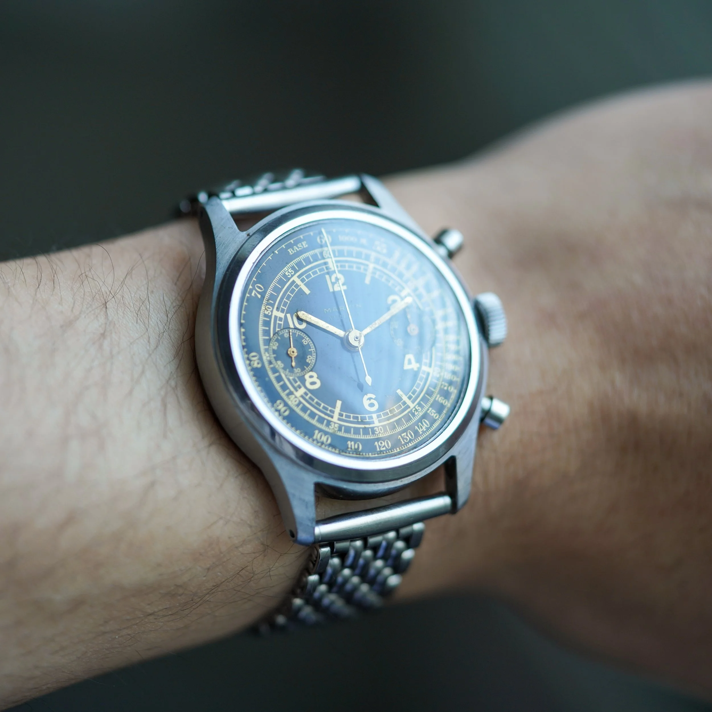 Movement: Manually wound Valjoux 22, signed Marvin