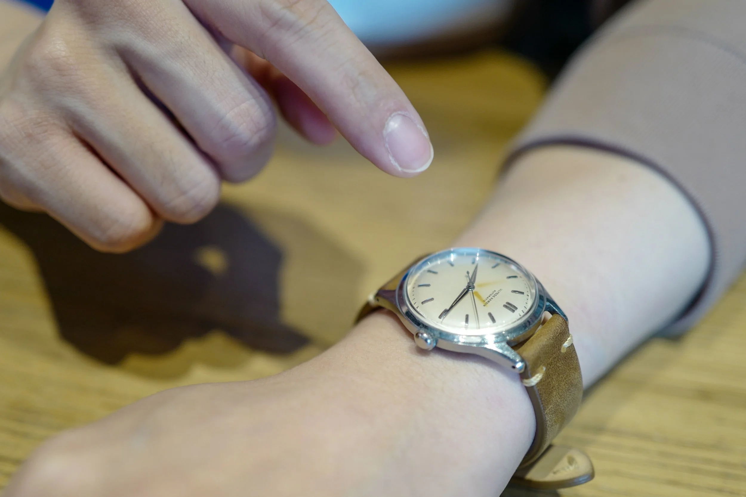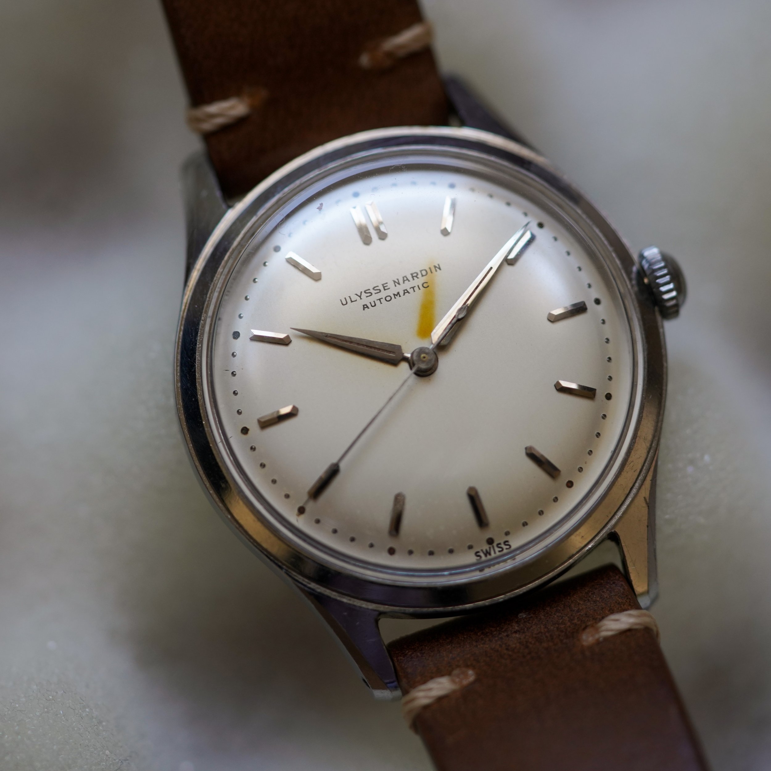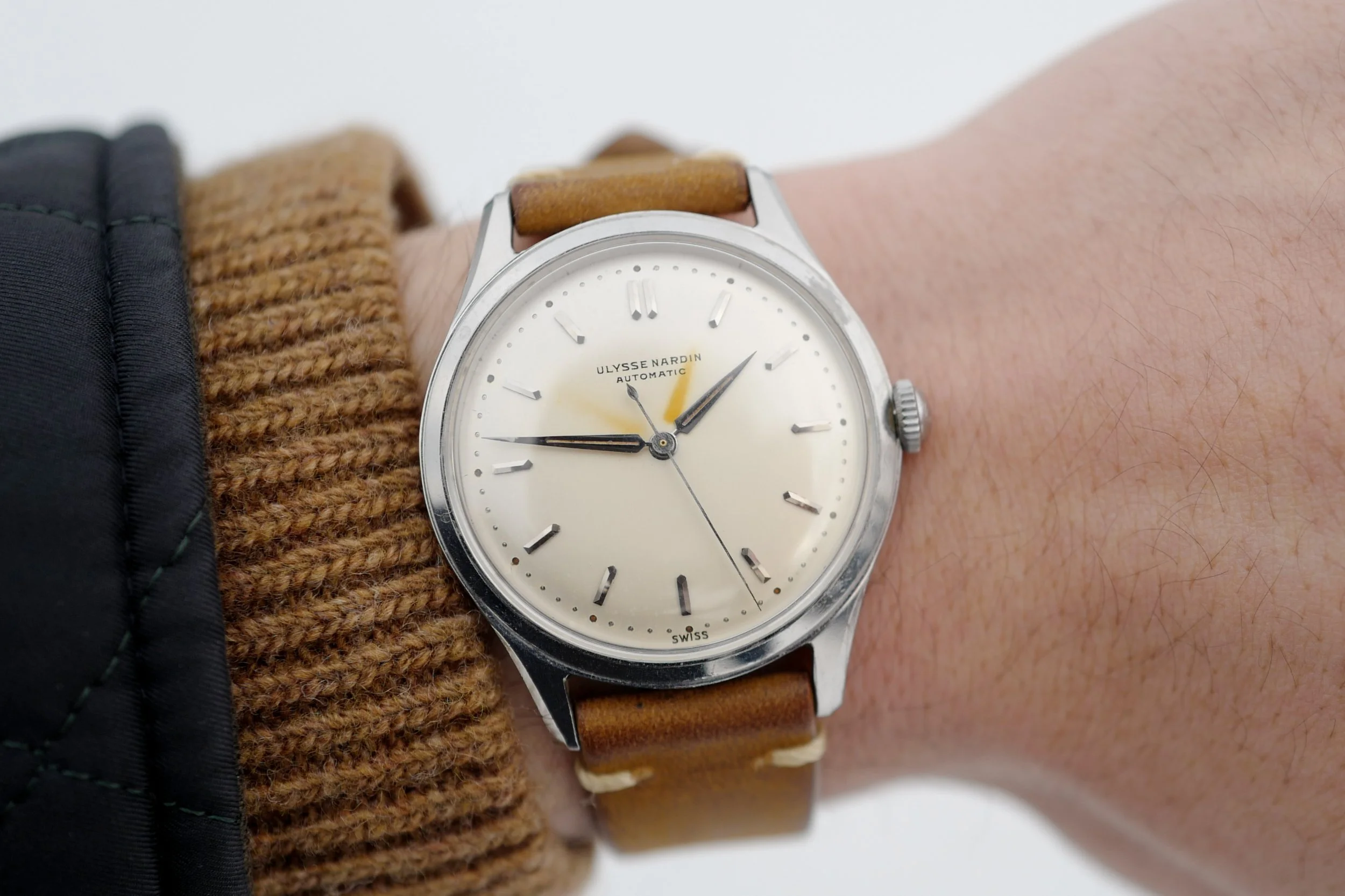 An egg-shell coloured Ulysse Nardin automatic with a unique radium burn.