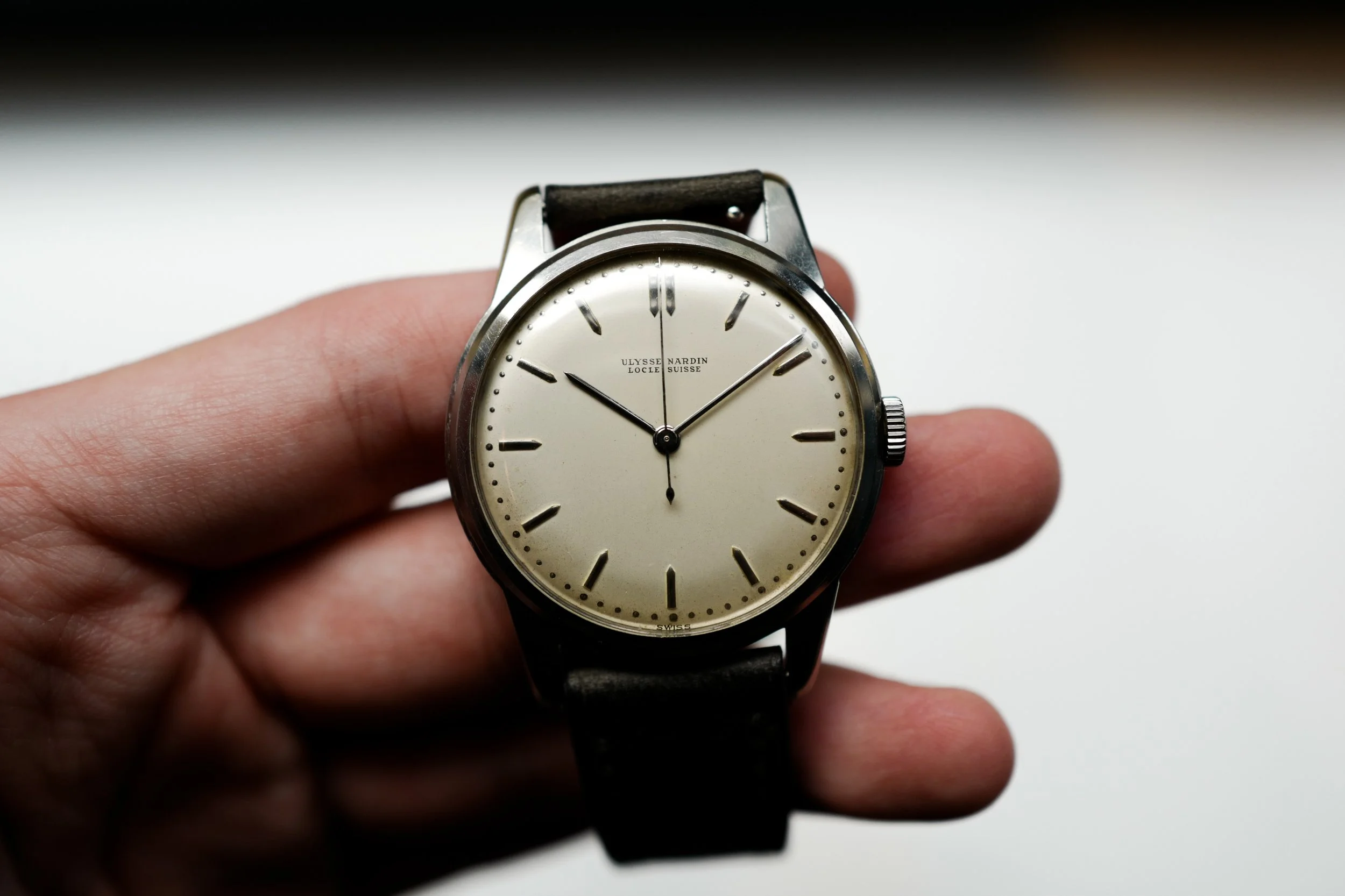 A pristine Ulysse Nardin calatrava, centre-seconds and featuring a lovely white dial.