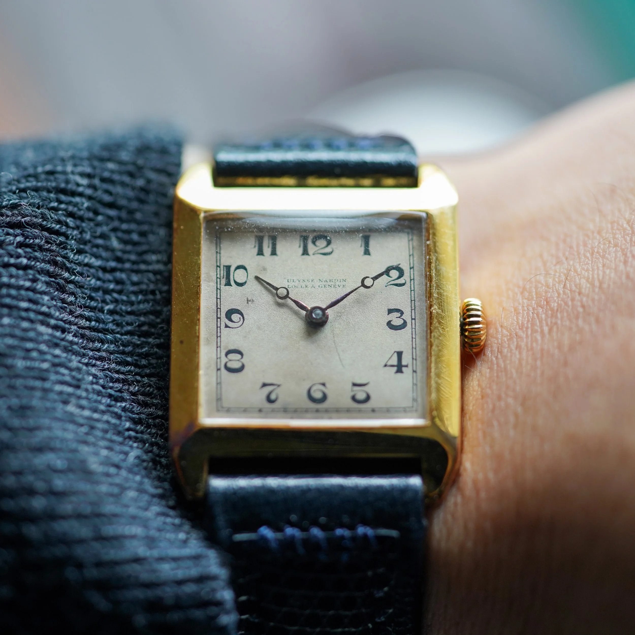 A very early and lovely example of Ulysse Nardin tank in solid 18k gold.