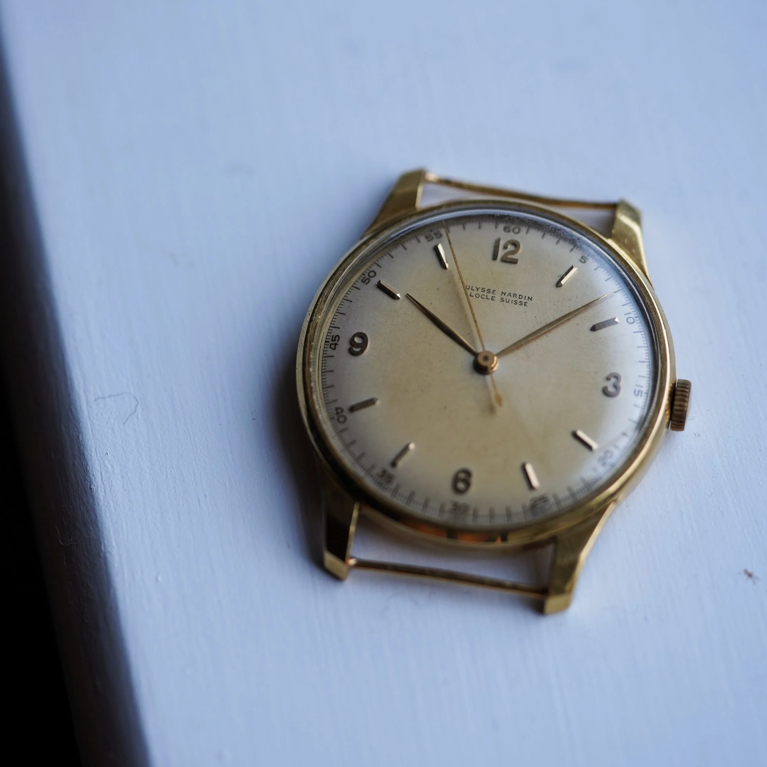 Case: 18k gold, snap-back, faceted lugs, signed Ulysse Nardin