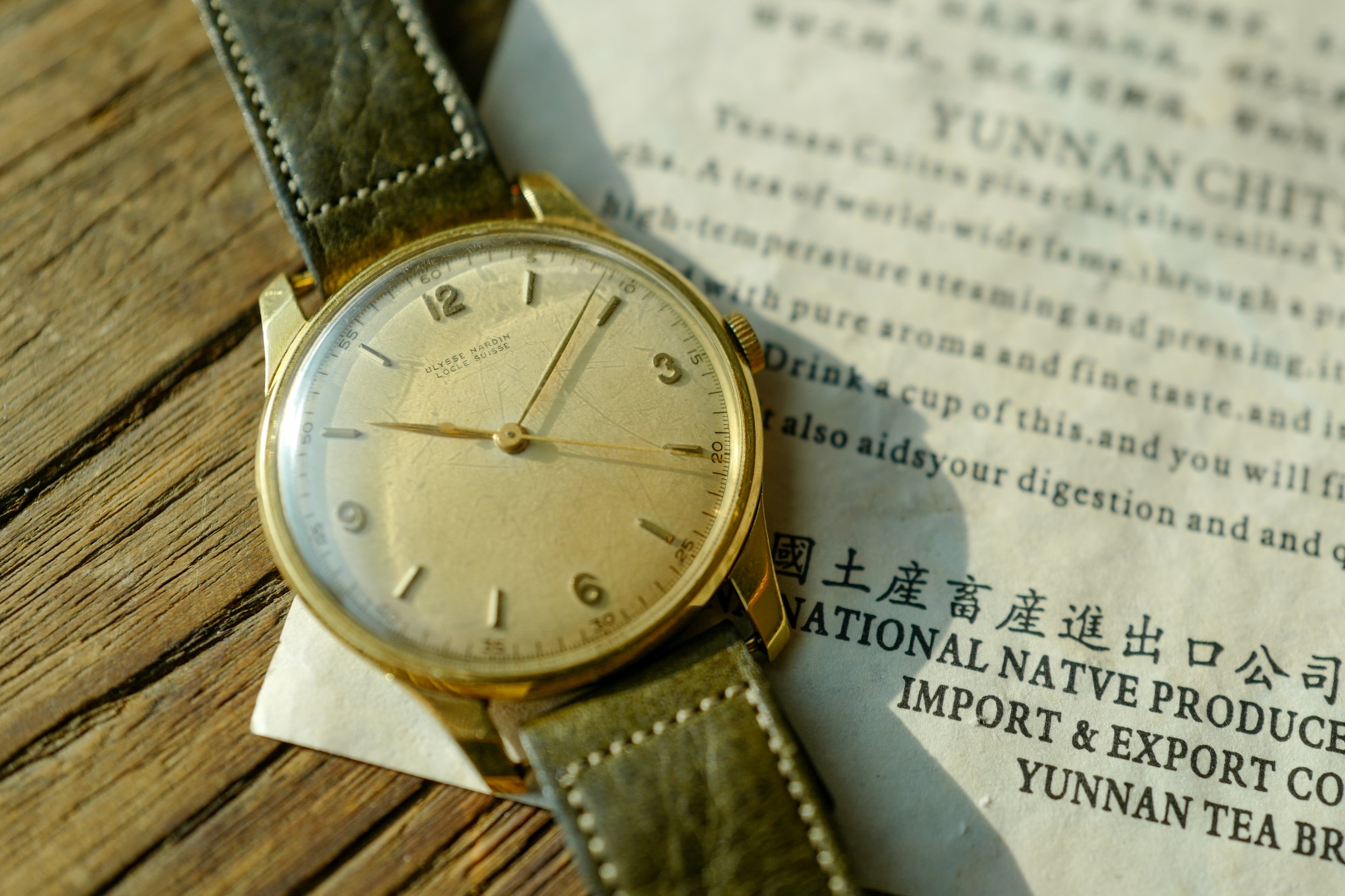 A beautifully balanced and oversized Ulysse Nardin time-only in a “yellow-on-yellow” configuration.