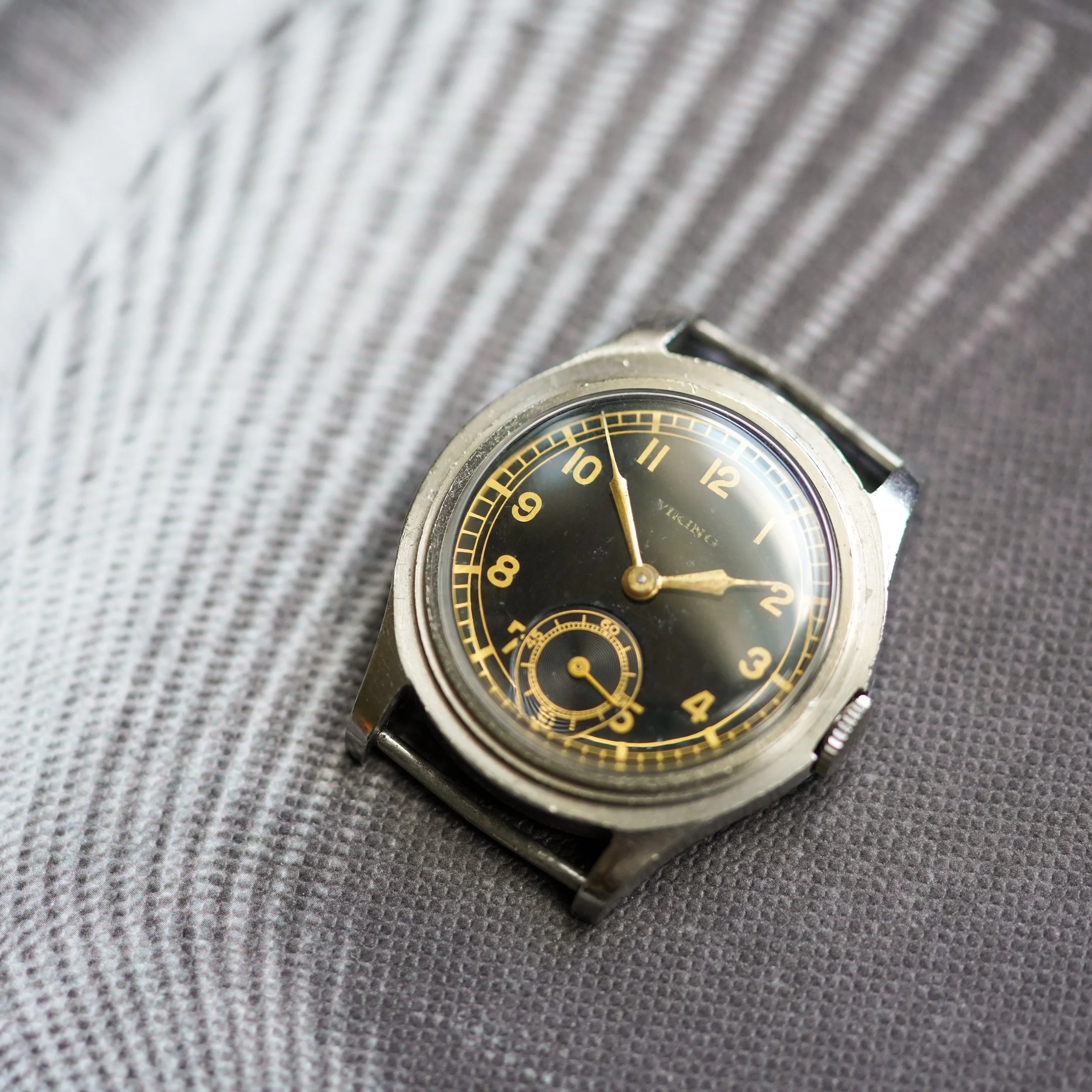 A rare tripled stepped calatrava from Viking, featuring a glossy black gilt sector dial.