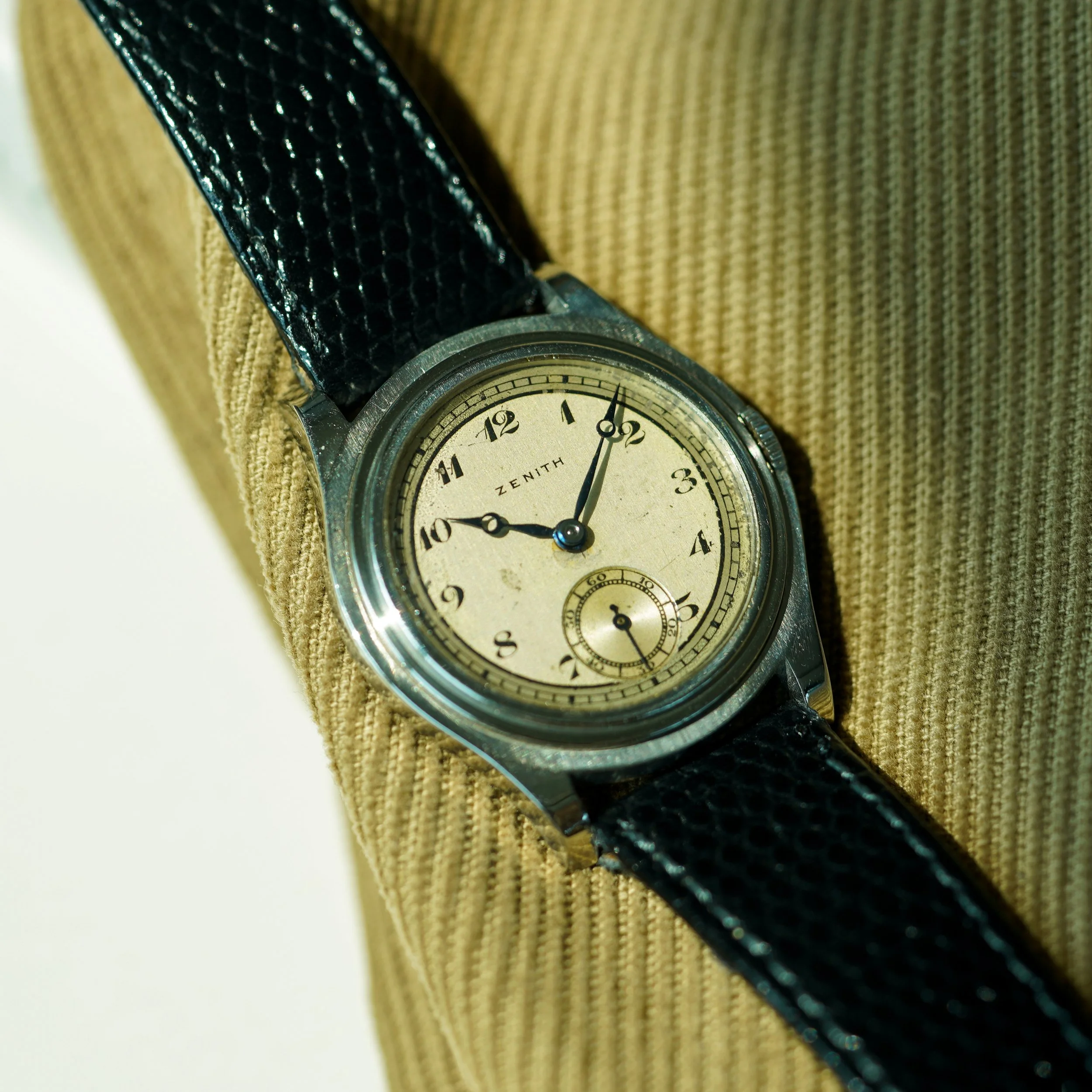 A rare Zenith calatrava with a triple stepped case and Breguet hands and numerals.