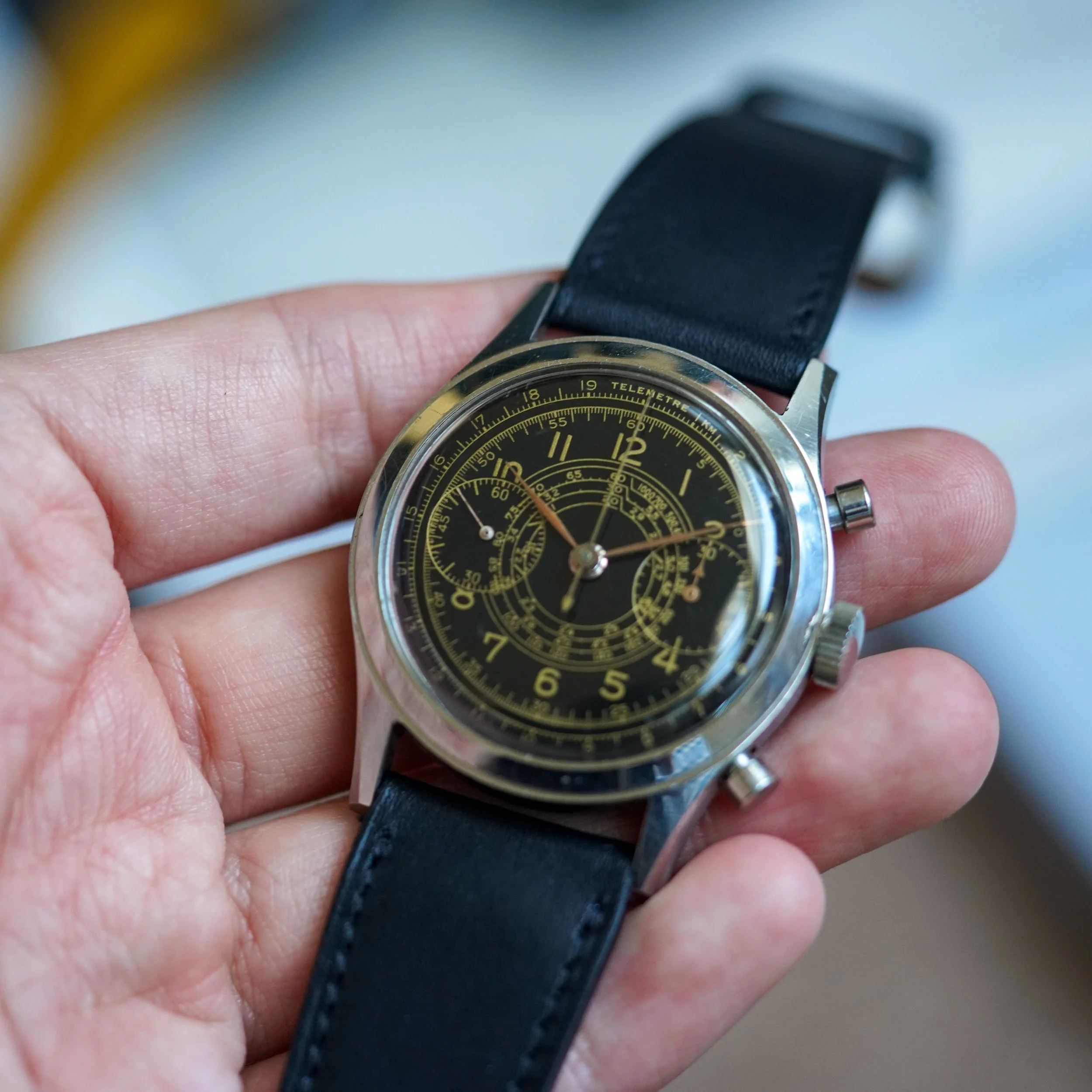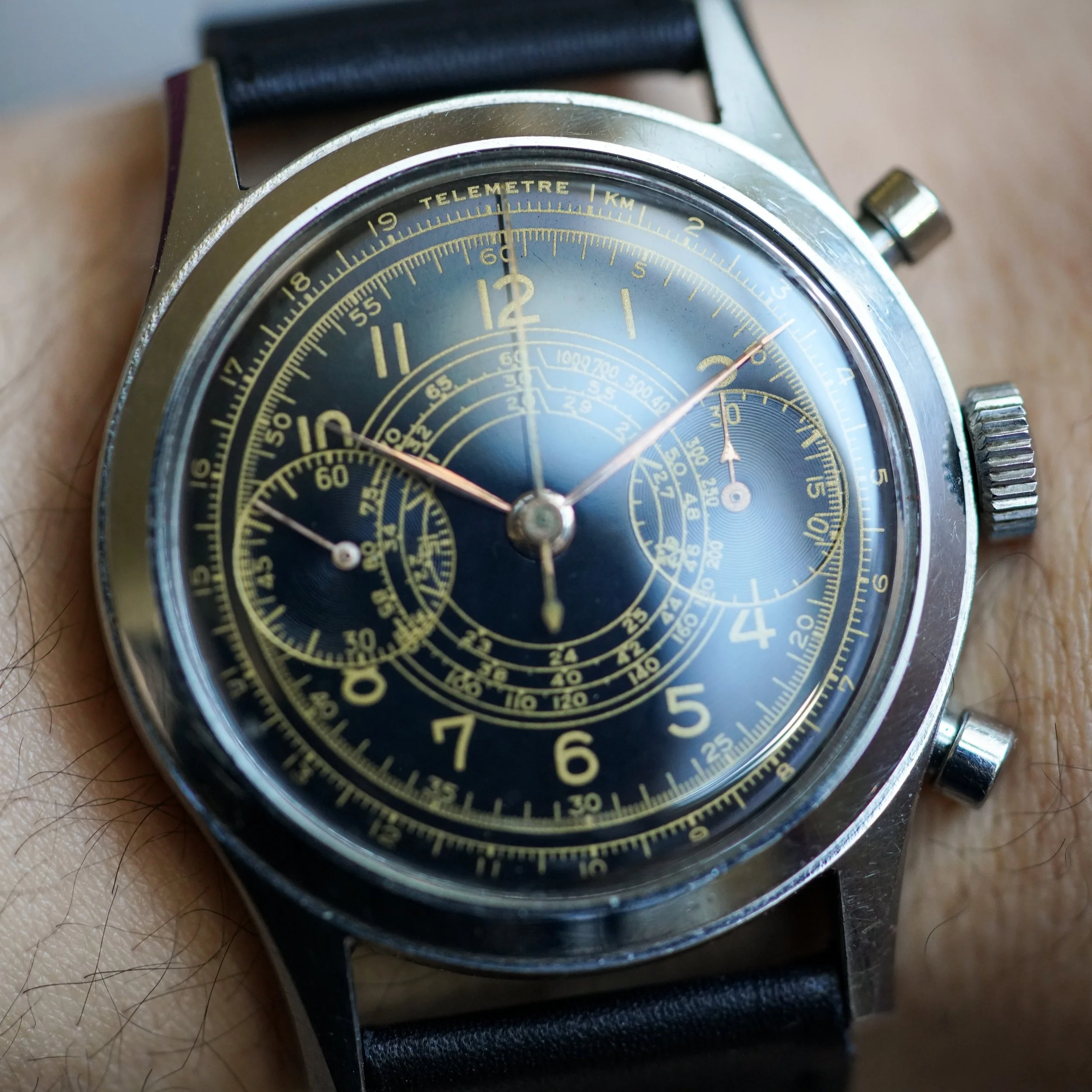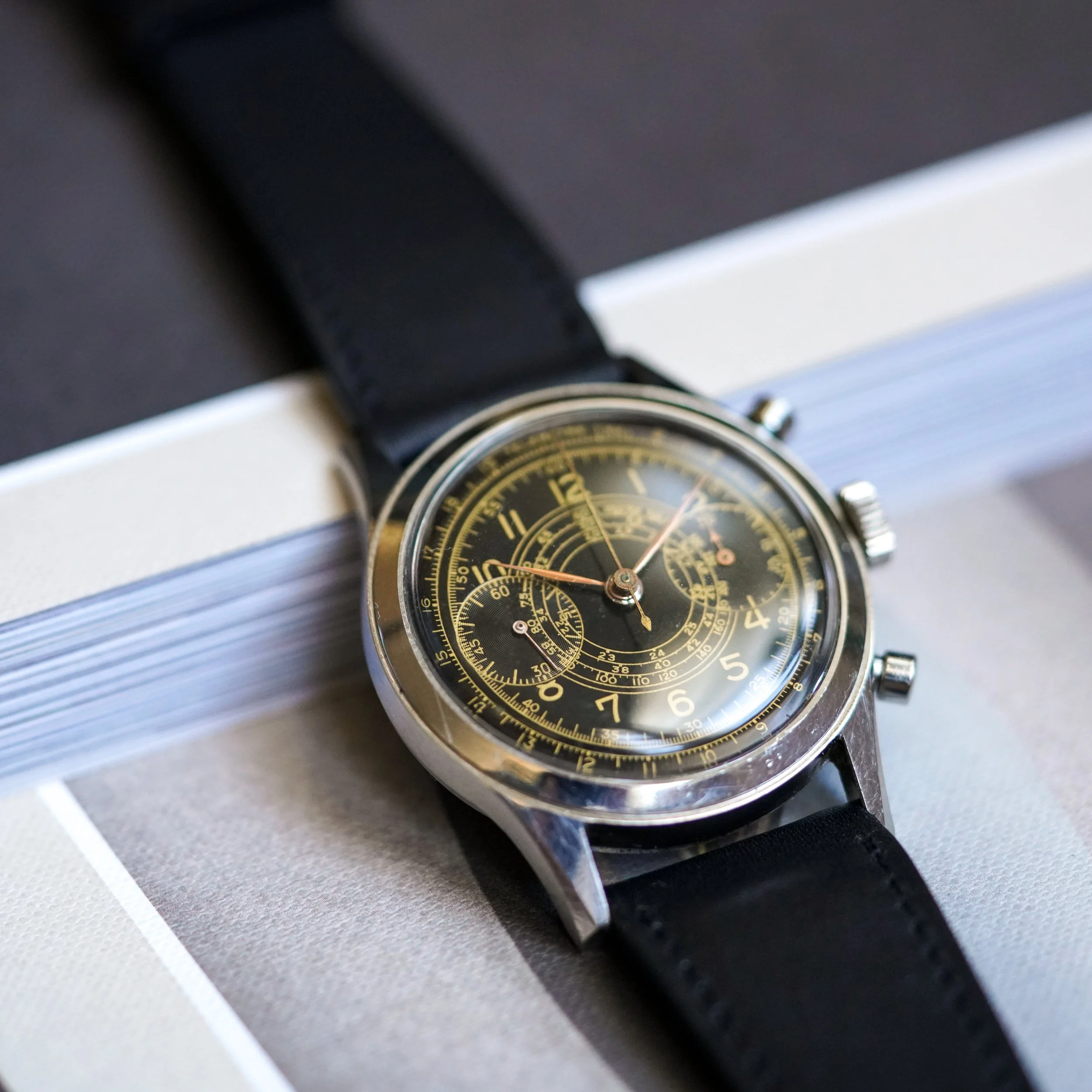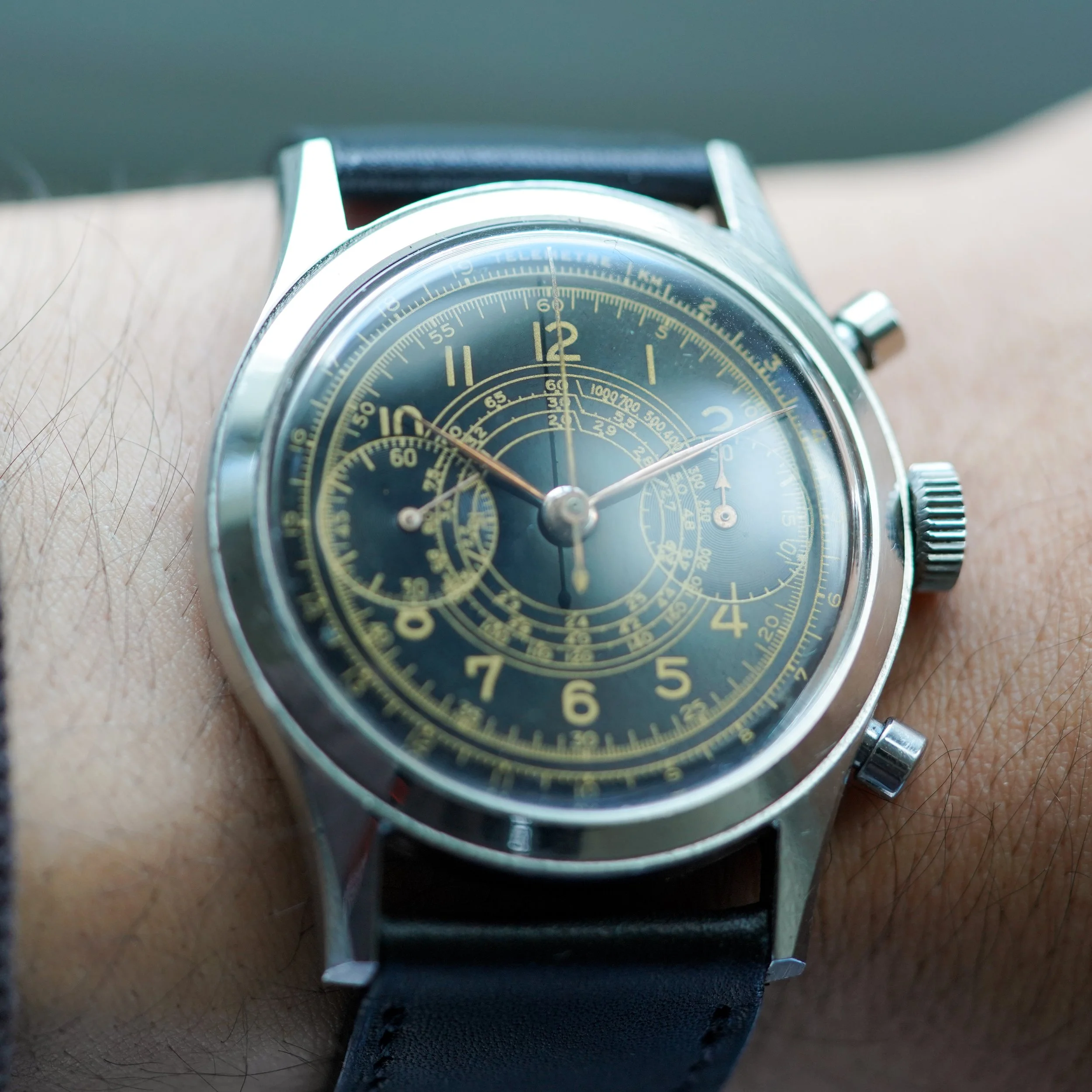 A pristine anonymous gilt dial chronograph running Valjoux 22.