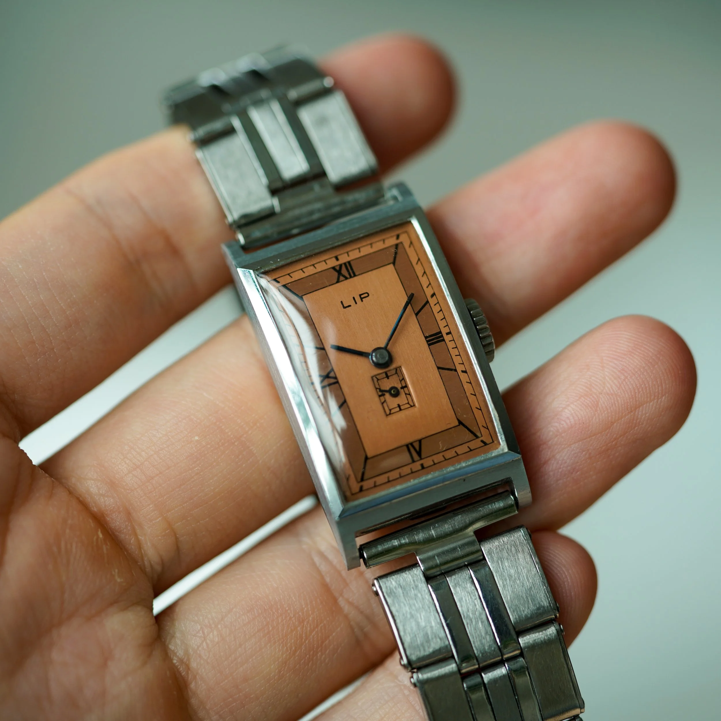 A truly aesthetically balanced tank from LIP, with a salmon sector dial.