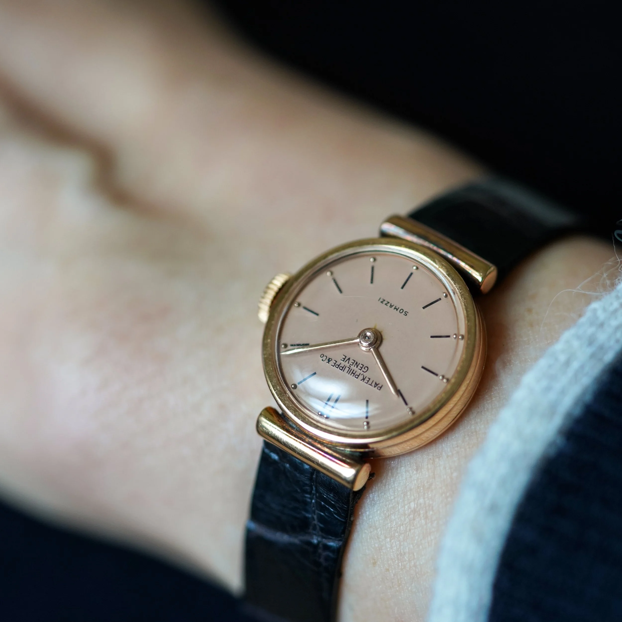 A stunning and well preserved ladies pink-on-pink Patek Philippe, retailed by Somazzi.