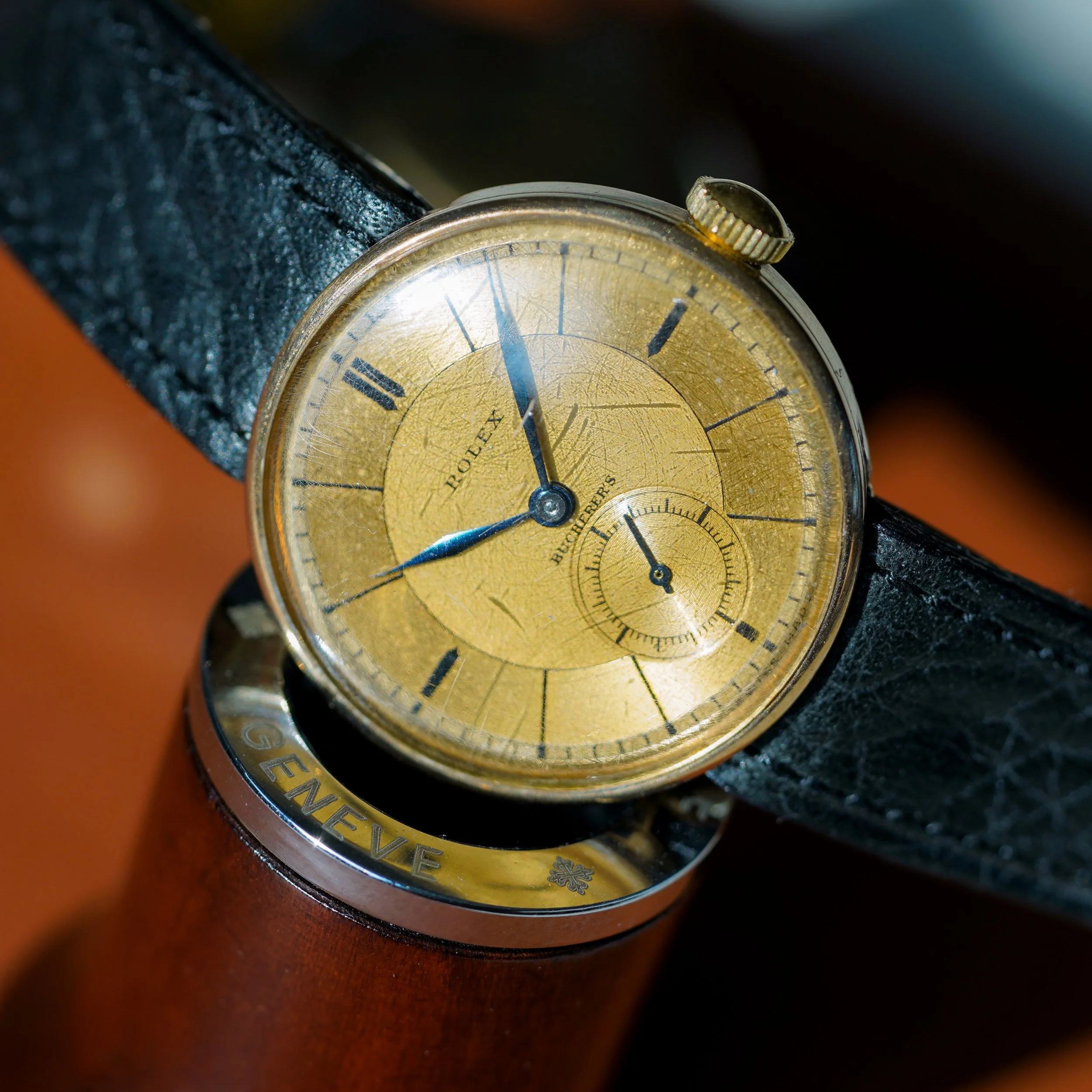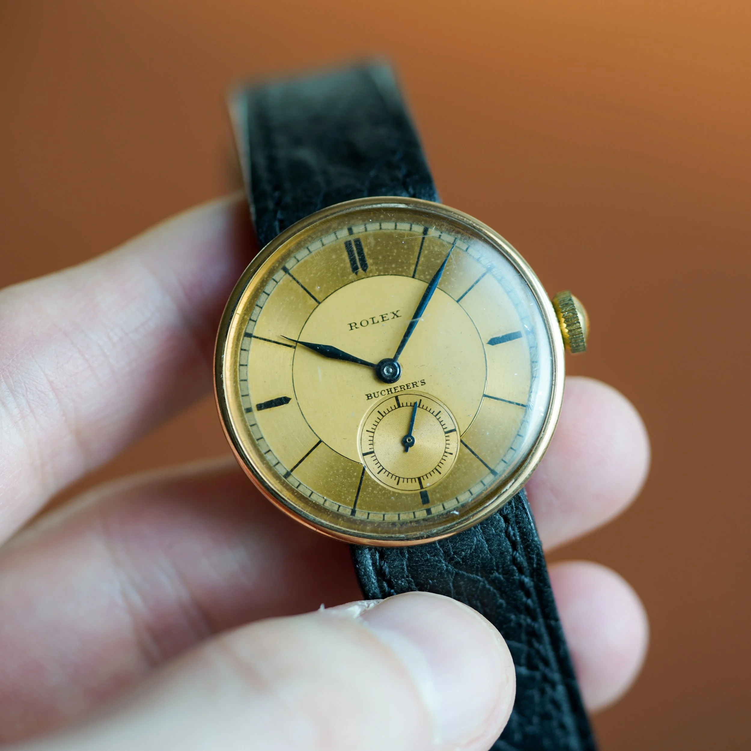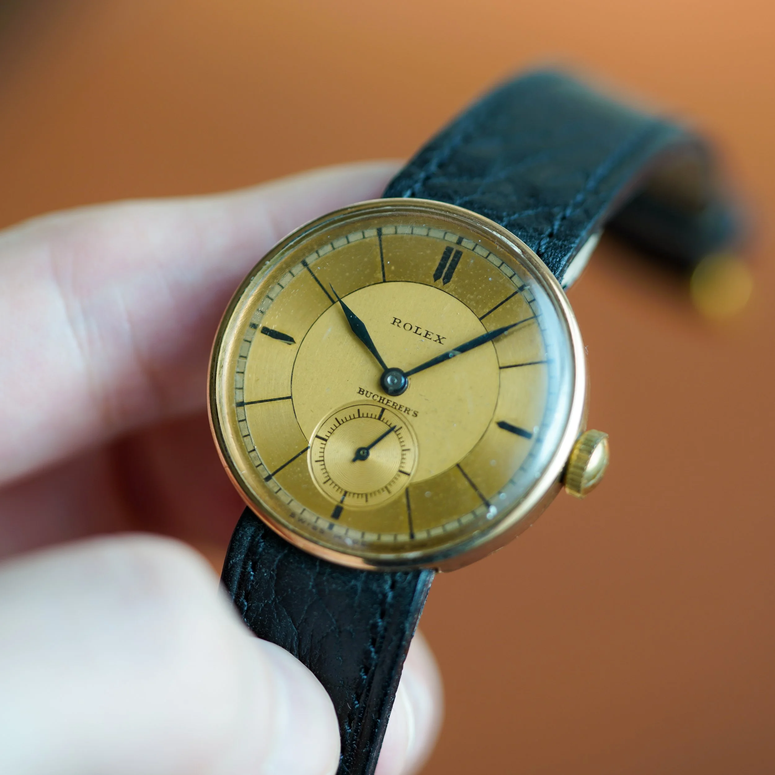 An extremely rare Rolex disco-volante with an incredible two-tone sector dial, retailed by Bucherer.