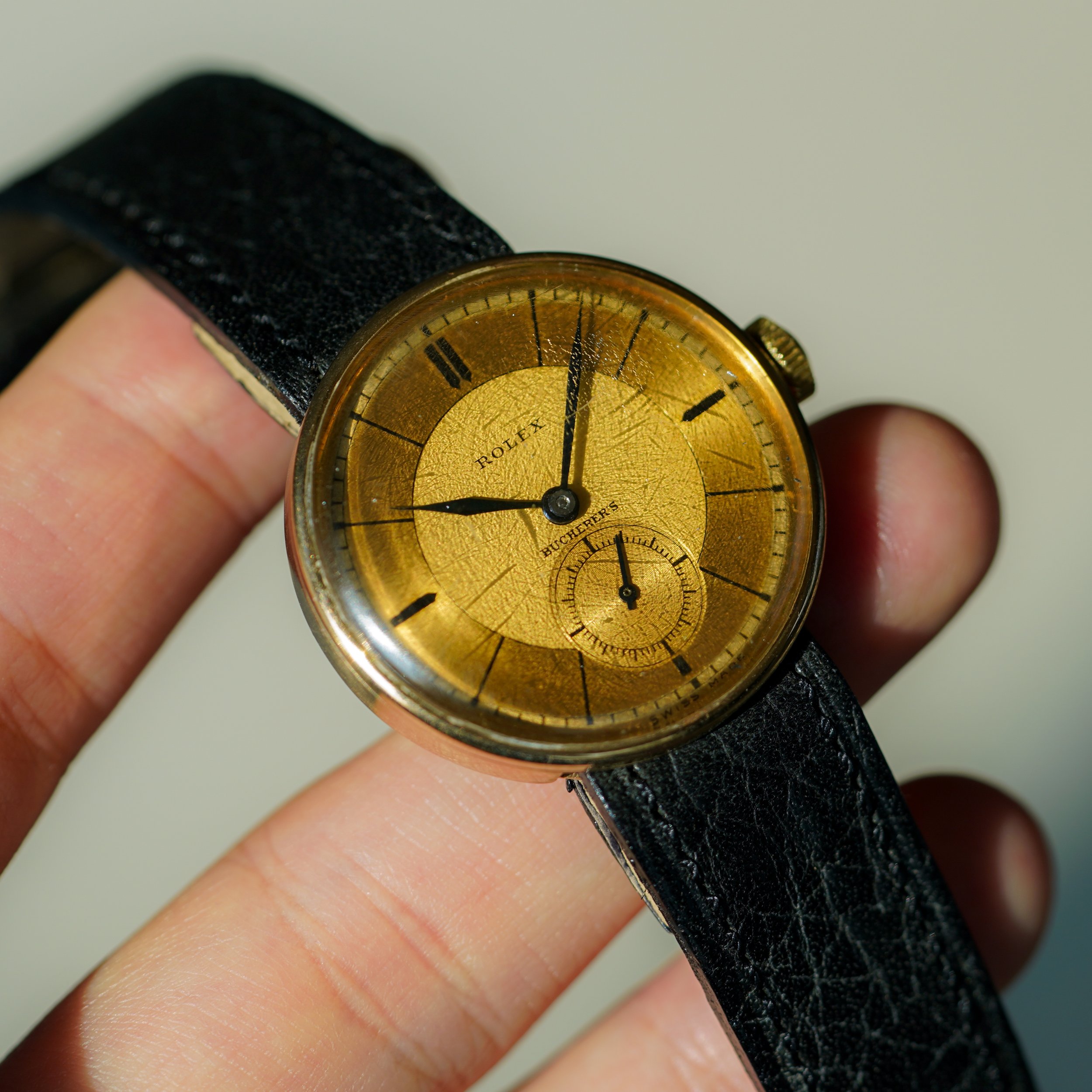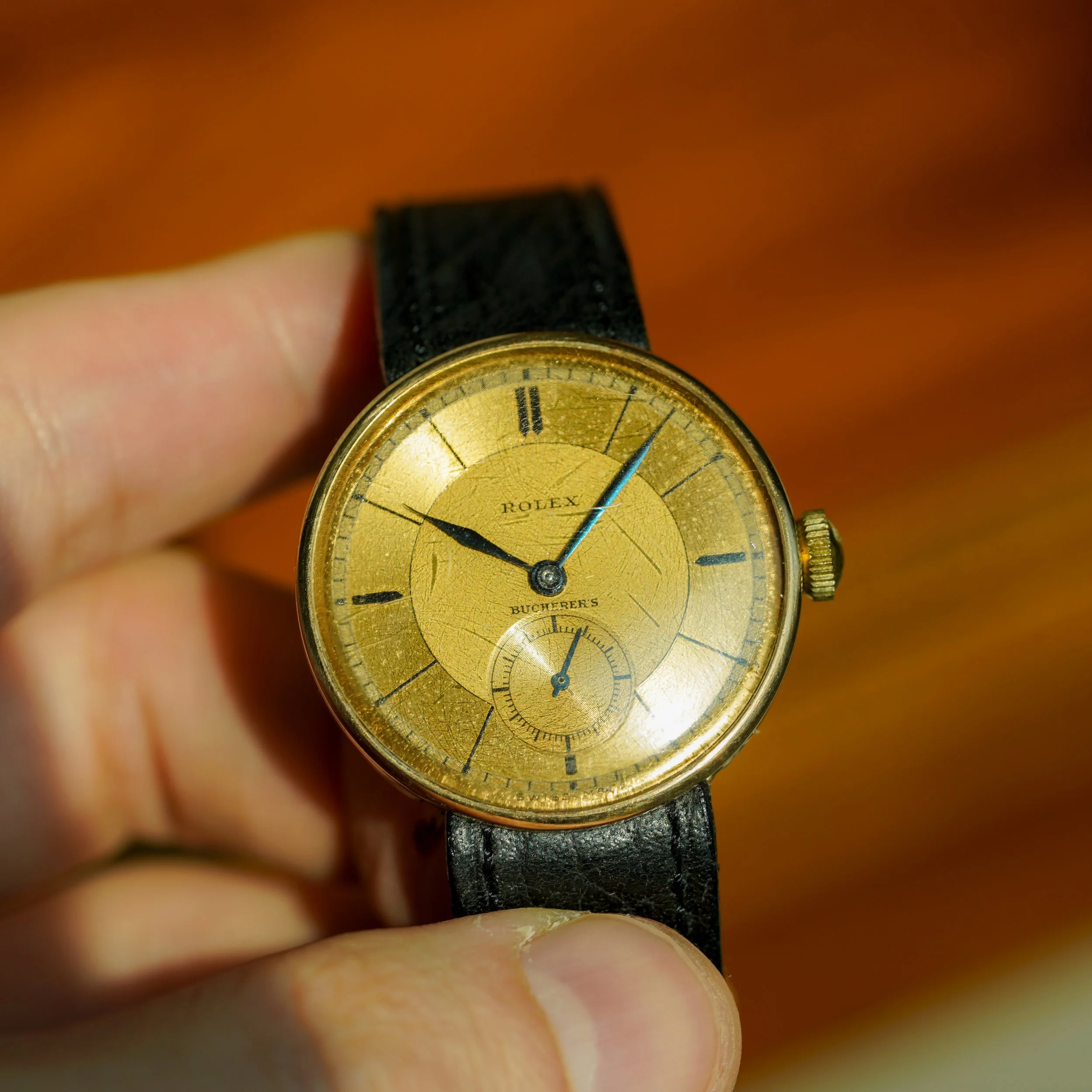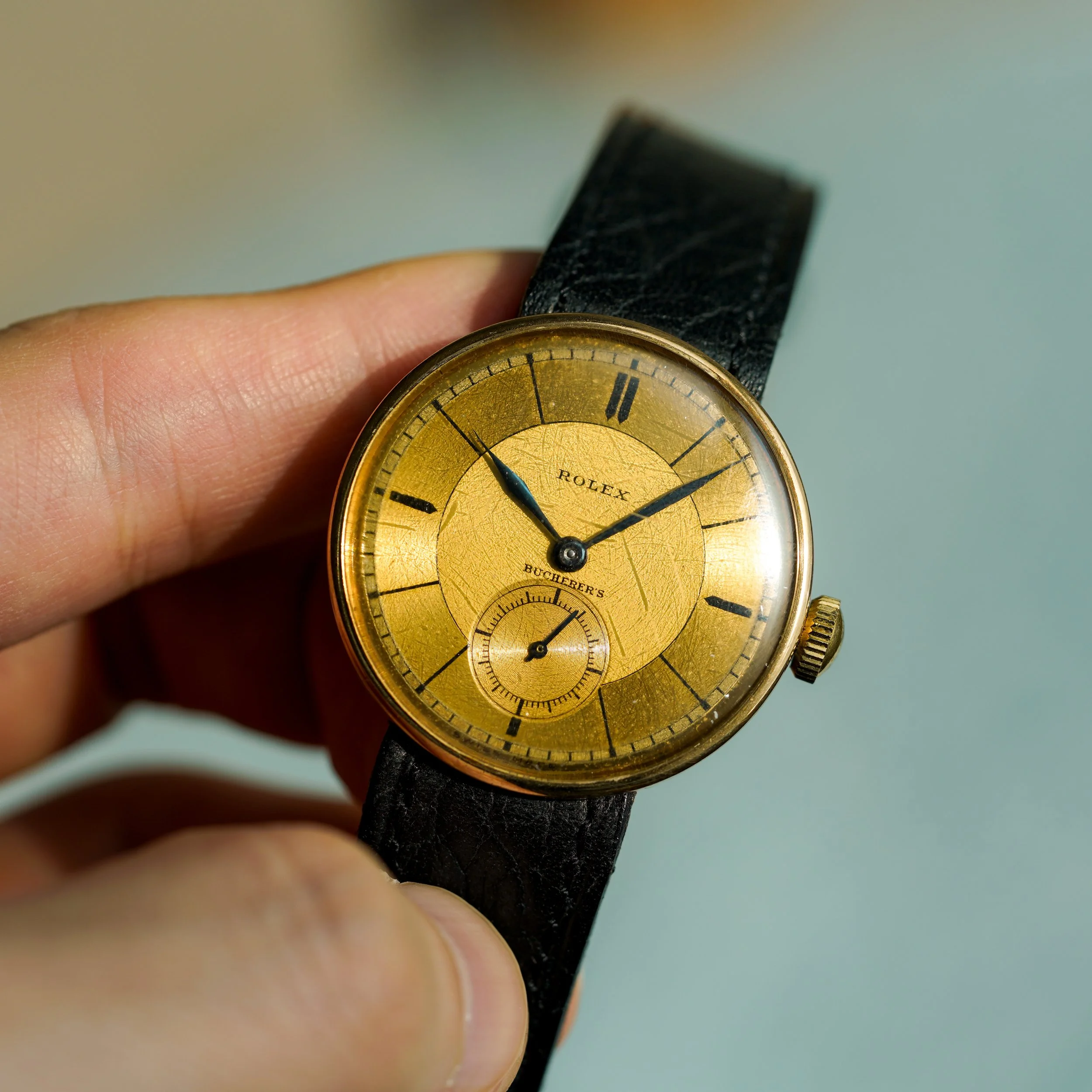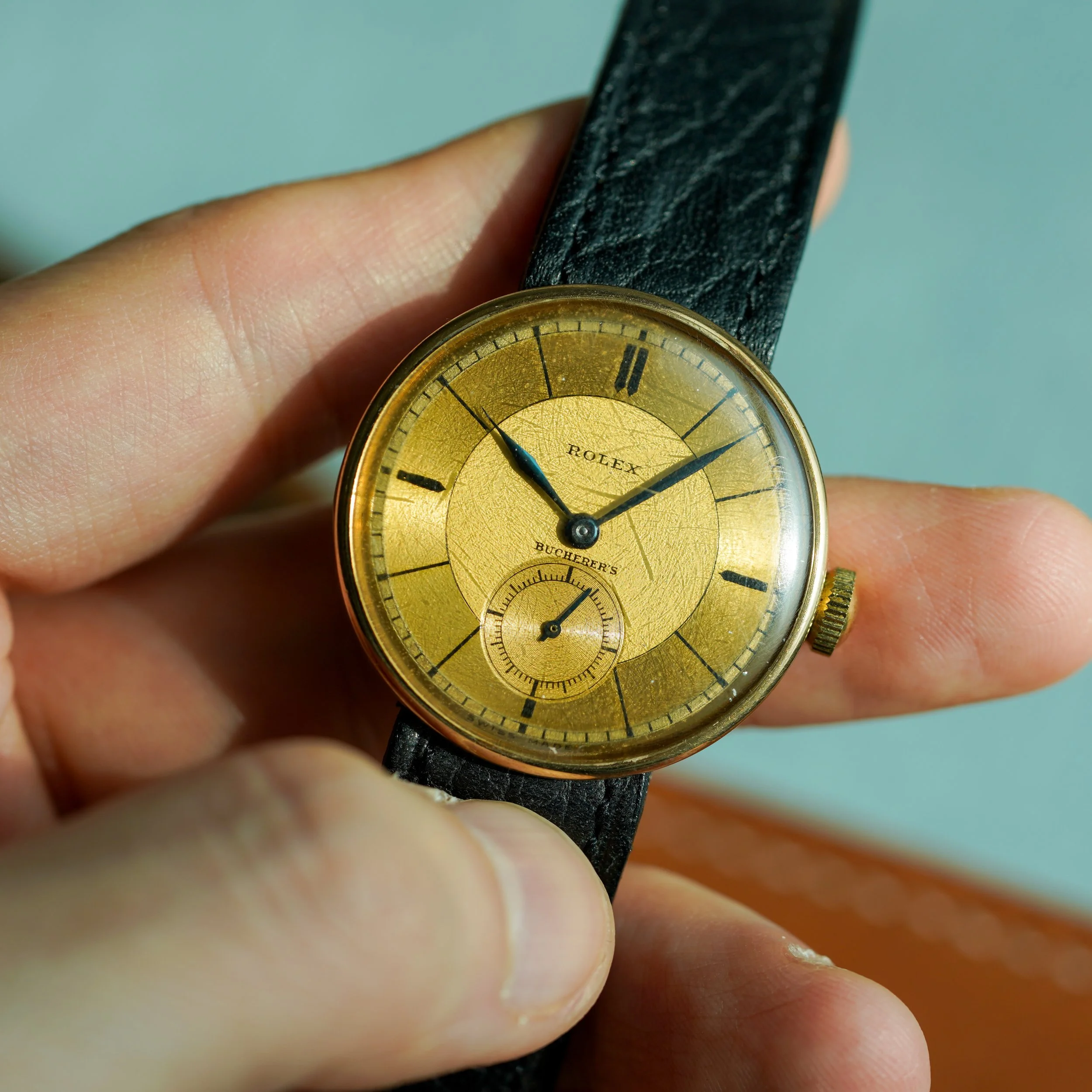 An extremely rare Rolex disco-volante with an incredible two-tone sector dial, retailed by Bucherer.