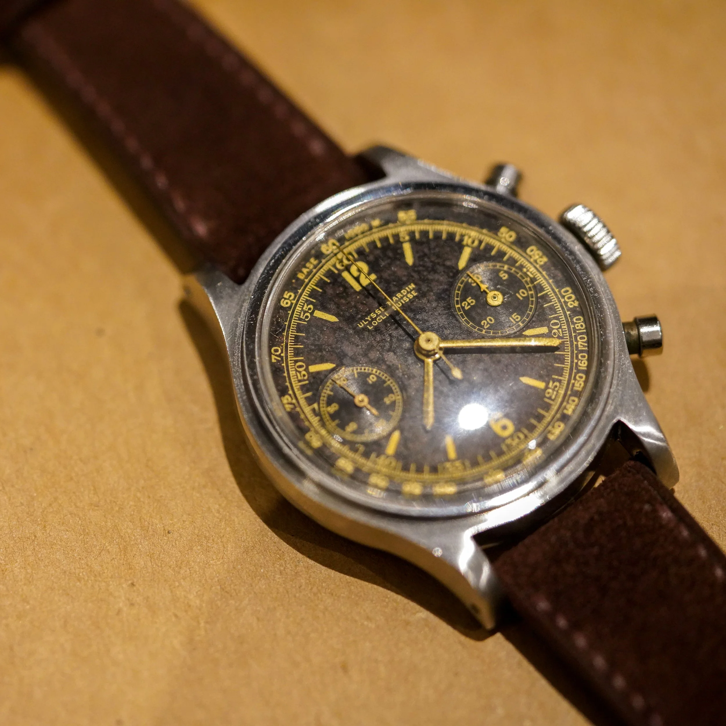Movement: Valjoux 23 manually wound chronograph, signed Ulysse Nardin